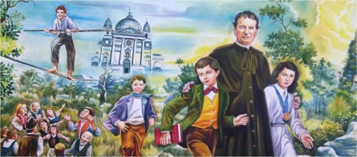 حدس دون بوسكو العبقري في التنشئة المسيحية وفي تربية الشبيبة أنه ربط الإيمان بالله والسعادة ارتباطاً وثيقاً ومباشراً وكذلك الحياة المسيحية والفرح، الأمانة للمسيح والحياة الناجحة. لذلك حطّم المعادلة: “المسيحية = العبوس”، الراسخة لدى الكثيرين من المسيحيين وغيرهم، ورفض ادّعاء المبشّرين “بالدموع والألم في هذه الدنيا وبالسعادة في الآخرة فقط”.