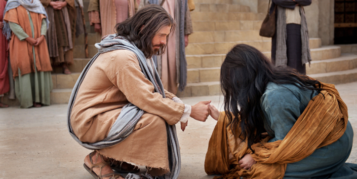 “فَلَمَّا انْتَصَبَ يَسُوعُ وَلَمْ يَنْظُرْ أَحَداً سِوَى الْمَرْأَةِ قَالَ لَهَا: «يَا امْرَأَةُ أَيْنَ هُمْ أُولَئِكَ الْمُشْتَكُونَ عَلَيْكِ؟ أَمَا دَانَكِ أَحَدٌ؟» فَقَالَتْ: «لاَ أَحَدَ يَا سَيِّدُ». فَقَالَ لَهَا يَسُوعُ: «ولاَ أَنَا أَدِينُكِ اذْهَبِي وَلاَ تُخْطِئِي أَيْضاً».”